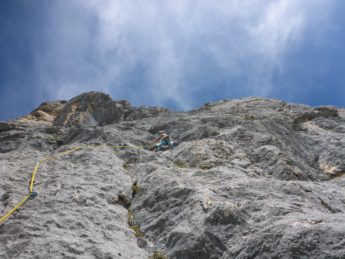 Der Zustieg ist ja schon recht selektiv, aber das merkt man an der Felsqualität: Auch nach fast 20 Jahren immer noch rau, griffig und sowas von Spassfördend!