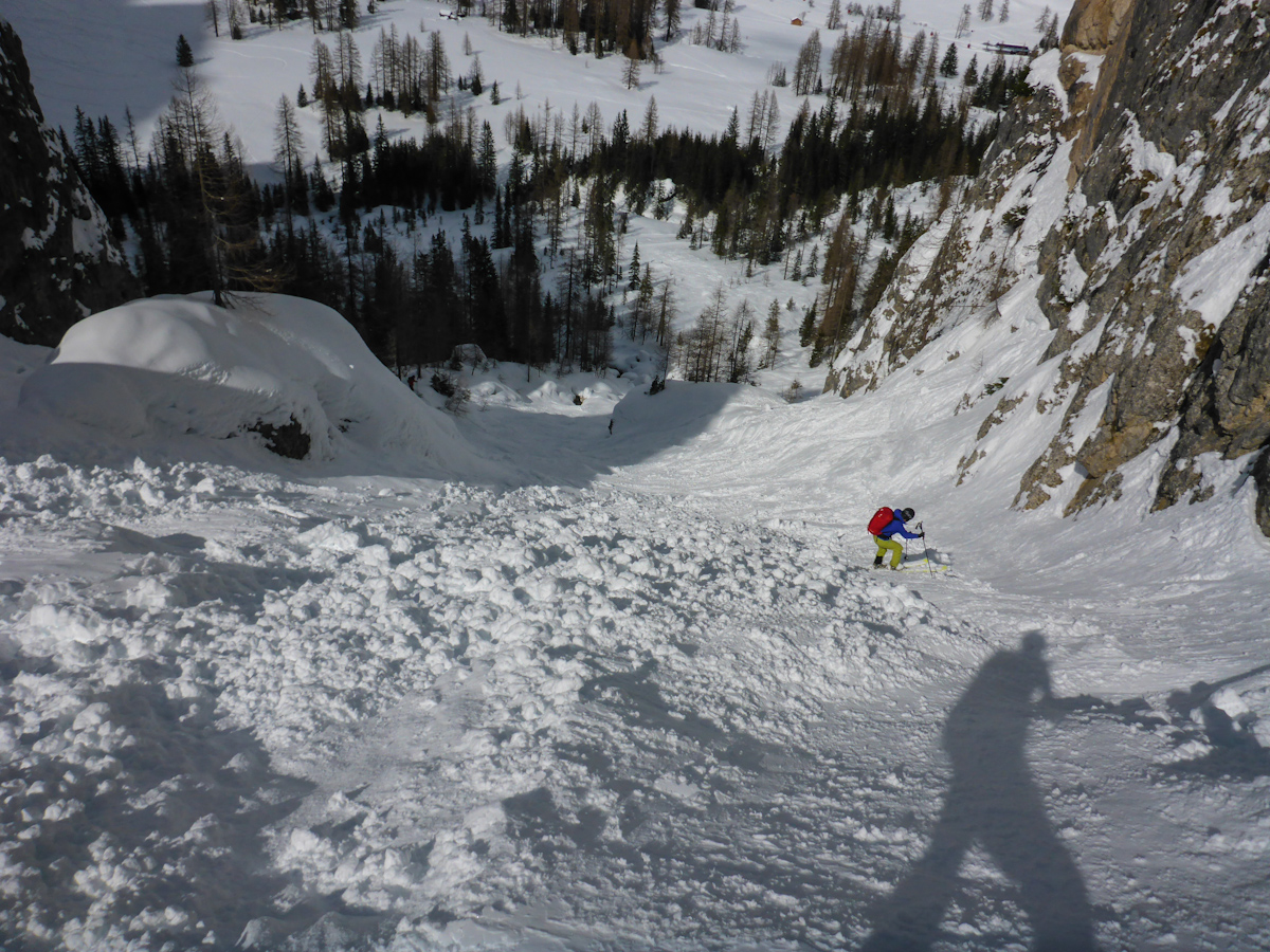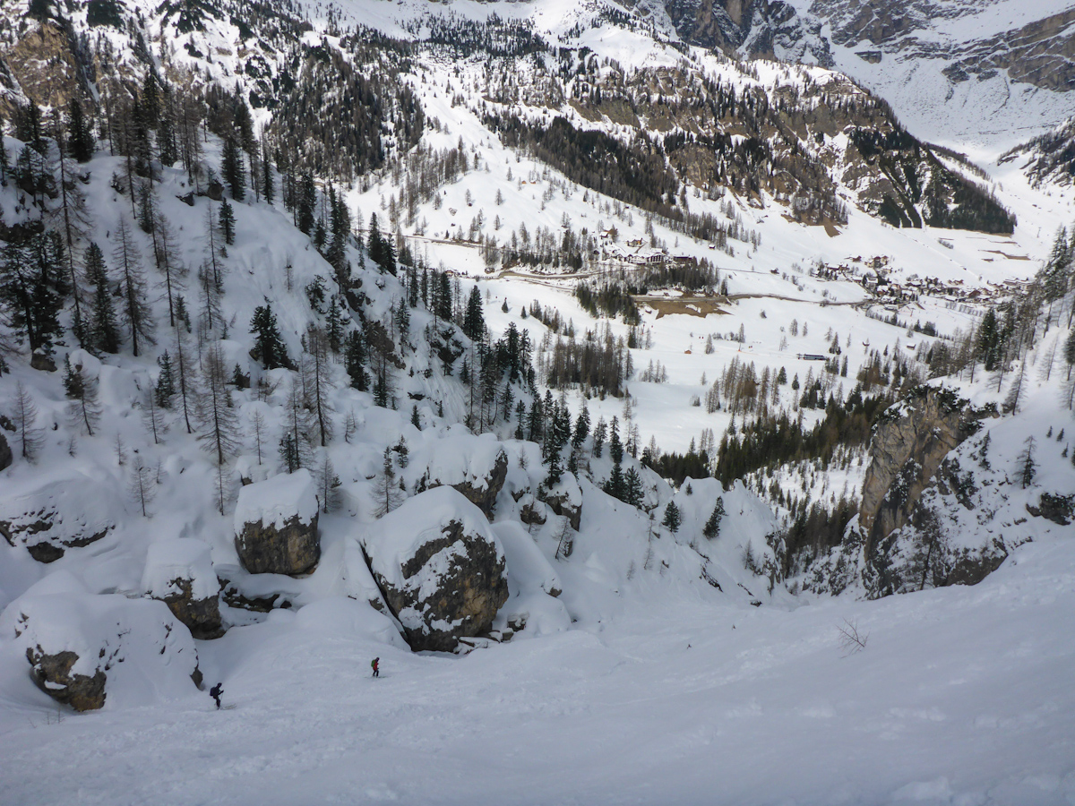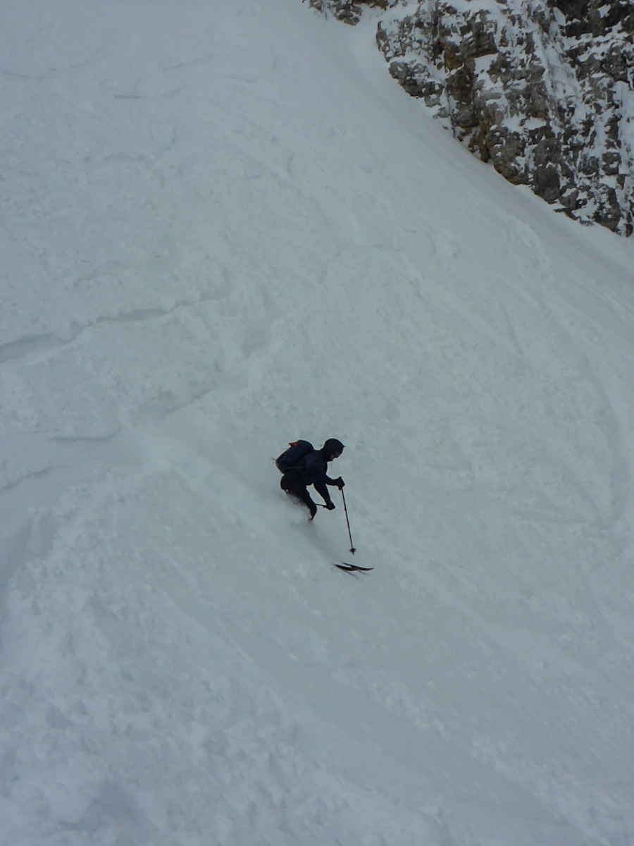 Heute, juchuuh! recht gutes Wetter. Wir haben ein paar Freerides vom Sass Pordoi gemacht. Grosse Freude! Bedingungen sind nach dem Neuschnee ziemlich gut, aufgrund der Wärme dürft sichs aber schnell wandeln…