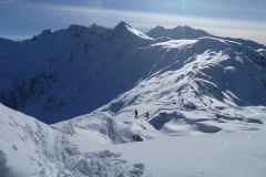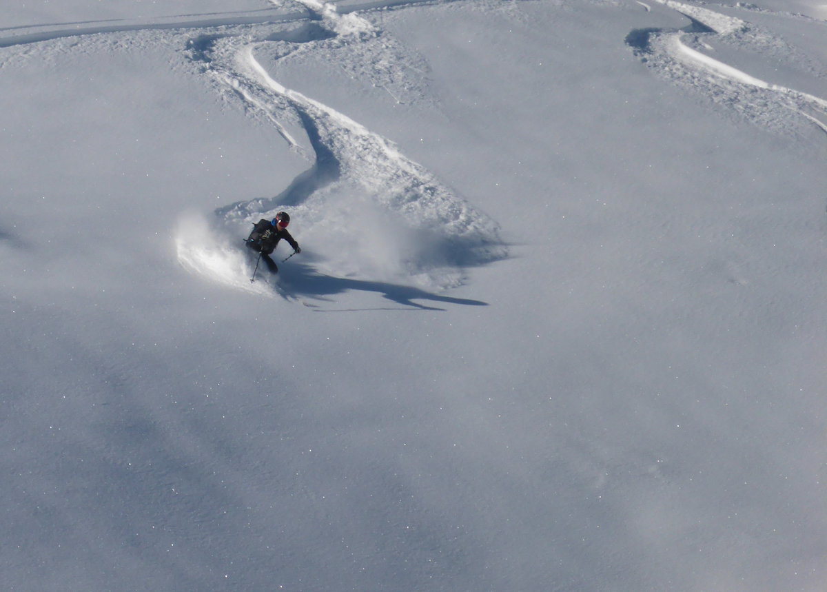In kurzen Worten: Topverhältnisse im Alpbachtal. Unterhalb ca.1600m durchaus Stein, Zaun und Viehtränkenkontakt. Droberhalb aber bestes cruisen im 20 cm Powder mit weitgehend vernünftiger Unterlage. Wir sind erst Richtung Standkopf gegangen, haben uns dann aber oberhalb der Greitalm von den Sonnenbeschienen Hängen (es war durchaus kalt) zunehmend nach nach Nordwesten leiten lassen. Heraus kamen wir am Hochstand, genau zwischen Standkopf und dem Wiedersberger Horn. Die abfahrt legten wir so, daß wir deutlich nördlich der Greitere Alm wieder in den Graben kamen. Bis auf wenige Meter sind das offene Idealhäng mit Pulver von oben bis unten. Wenn jetzt nur kein Föhn kommt!